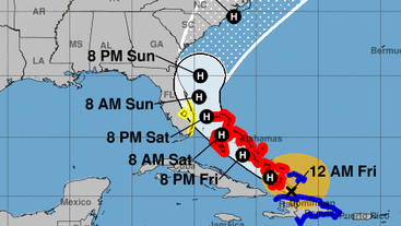 The storm grew into a Category 1 hurricane early Friday as the Bahamian government urged citizens to prepare for the worst.